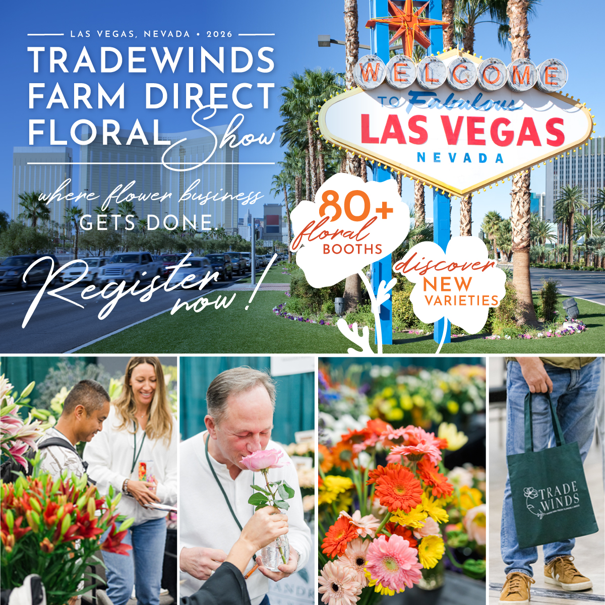 The 2026 Tradewinds Farm Direct Floral Show will take place at the Rio Hotel, Las Vegas, on February 25th-26th and is open to qualified floral buyers.