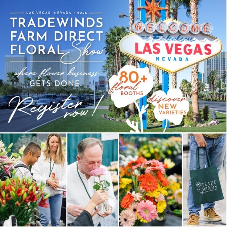 Designed to deliver full-service solutions that enable floral companies of all sizes to purchase fresh flowers directly from 125+ farms across South America and beyond, Tradewinds provides competitive logistics programs, e-commerce tools, web portals, expert buying assistance, and value-added operational support. Their biennial show provides attendees the opportunity to meet with farms face-to-face, explore new varieties, and set themselves up for smarter, more strategic flower buying in the year ahead. Click HERE to learn more.