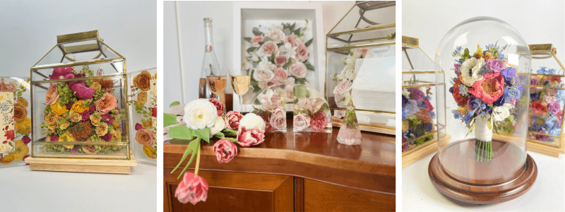 Keepsake Floral works with florists nationwide to help florists provide wedding and funeral flower preservation to their clients through partnership programs designed for ease and increased event revenues. Keepsake Floral preserves brides' actual wedding bouquets, (as well as flowers from memorial and funeral services), transforming fresh blooms into stunning, lasting keepsakes that can be treasured for a lifetime. Classically trained artists carefully preserve, restore and hand-color each bloom before their careful placement within the client's personalized piece of artwork, offering clients an outstanding variety of keepsake styles, from traditional shadowboxes and oval frames to contemporary resin castings and delicate glass boxes.