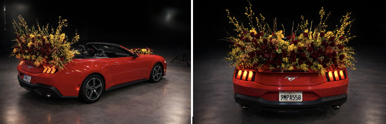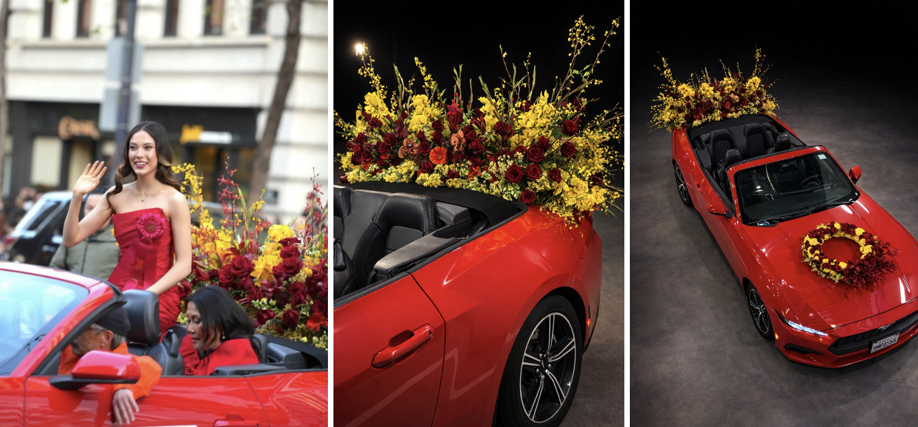 SFFM Floral Designers Transform Olympian Eileen Gu’s Grand Marshal Mustang with Bold Red & Gold Blooms